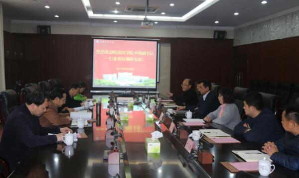 3月30日下午,皖南医学院党委副书记李刚及学院组织部、人事处、办公室负责人一行5人来必赢调研交流。校党委副书记陈润、副校长顾明言接待了来宾,党委组织部、学校办公室、人事处负责人参加座谈交流,座谈会由陈润主持。