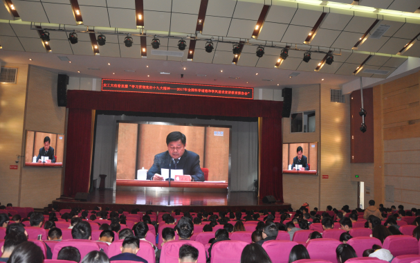11月14日,中国科协、教育部、中国科学院、中国社科院、中国工程院、国家自然科学基金委和北京市政府共同主办的“学习贯彻党的十九大精神——2017年全国科学道德和学风建设宣讲教育报告会”在人民大会堂举办。必赢科研处、研究生院和团委组织全校师生员工一千多人在秀山校区大学生活动中心设立分会场集中观看报告会,部分师生通过网络视频自行同步收听收看报告会实况。