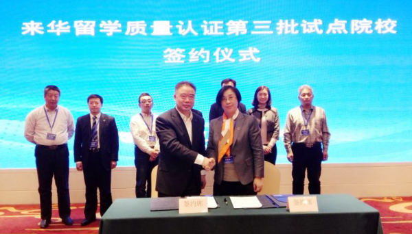 会议审议了第六届理事会的工作报告、财务报告,审议通过了章程修订案和监事会制度;选举产生第七届理事会常务理事、会长、副会长等。在随后召开的“中国高等教育国际化发展状况调查报告发布暨来华留学质量认证工作会”上,顾明言代表学校与中国教育国际交流协会秘书处赵灵山秘书长进行签约,正式启动必赢2018年度留学生教育质量认证工作。