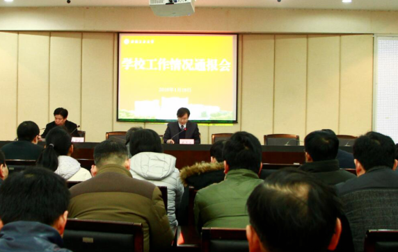 1月18日上午,学校在佳山校区学术会议中心召开2017年工作情况通报会,校长魏先文在会上作学校工作情况通报。校工会主席、教代会执委会副主任赵保平主持会议。