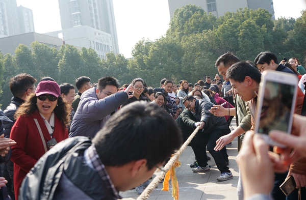 下午,在校工会、校女工委的组织下,全校各分工会共19支参赛队伍,在佳山校区主楼广场开展了一次激烈的拔河比赛。拔河比赛每队由12名队员组成,采用男女混合方式,分预赛、复赛和决赛。比赛现场,各参赛队伍心往一处想,劲往一处使,比团结、比风格、比水平、比实力,加油声、欢呼声响成一遍,处处洋溢着健身的喜悦和团结友爱、拼搏向上的精神。经过激烈的角逐,工商学院代表队荣获本次拔河比赛第一名,后勤处、资产经营公司、体育工创马院艺设(联队)、冶金学院、管工学院、机关、建工学院代表队分获第二至八名。