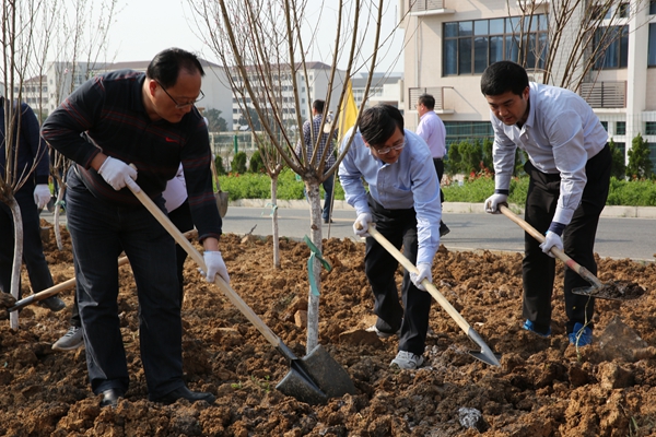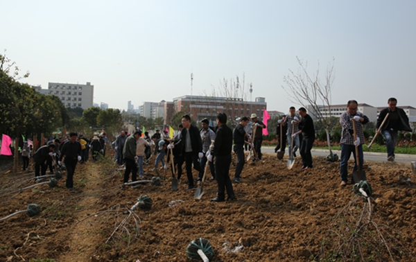 阳春三月,春暖花开。3月27日下午,秀山校区冶材化楼南侧上坡空地上旌旗招展,人头攒动。校领导刘新跃、魏先文、祖明、林钟高、葛芦生、顾明言和机关各部门(单位)干部职工,一起参加义务植树活动。