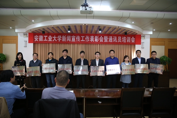会上,校党委常委、组织部部长刘明宣读了校2017年度新闻宣传优秀单位、优秀通讯员及先进个人的表彰通报和校第八届“文明示范窗口”单位的通报。对学校2017年新闻宣传工作优秀单位、先进个人及校第八届“文明示范窗口”单位颁发了奖牌和证书。