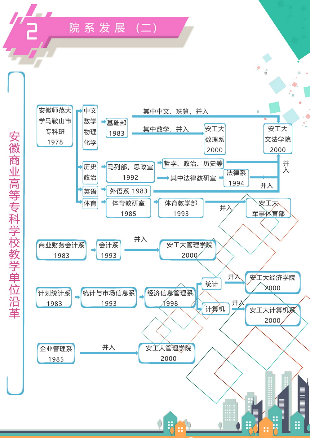 近期,校办档案室通过查阅自1958年至今的有关档案,设计制作出各类图表,为大家梳理出学校及各院系的历史沿革。在本期推出的各类图表中,大家可以看到学校的历次更名、合并及组建情况,也可以了解到学校各时期院系的发展历程。