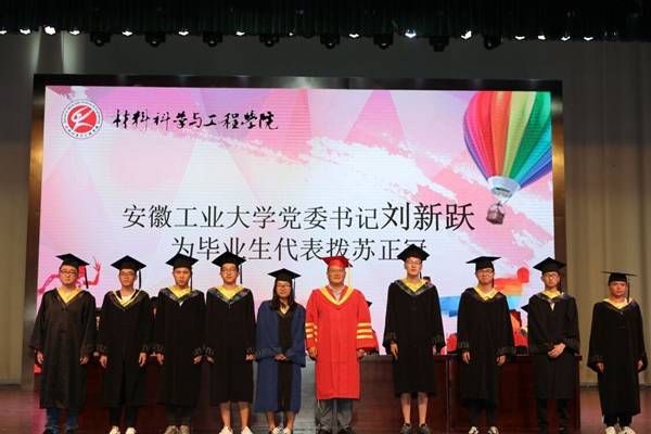 6月27日下午,材料科学与工程学院在秀山校区新大活礼堂举行2018届学生毕业典礼。校党委书记刘新跃出席典礼,祝贺全体毕业生顺利毕业,并向为同学们成长成才辛勤付出的父母、师长表示衷心的感谢。他在毕业纪念册上写下了“有梦想,强本领,敢担当,乐奉献”的深情寄语,指出每位同学都在和学校、学院一起成长、一起奋斗、一起进步。希望学子们在今后的生活中继续践行“精工博学,厚德敏行”的校训精神,坚定理想信念,找准人生方向。把个人的梦想融入中华民族伟大复兴的中国梦,做到有目标、有方向、有动力,不迷失、不急躁、不畏惧;坚持笃实好学,增加人生资本。勇于承担起更加繁重的使命和责任,做到坚守初心奔前程、脚踏实地有干劲、终身学习葆活力、严以修身立根本。坚定理想信念,找准人生方向。