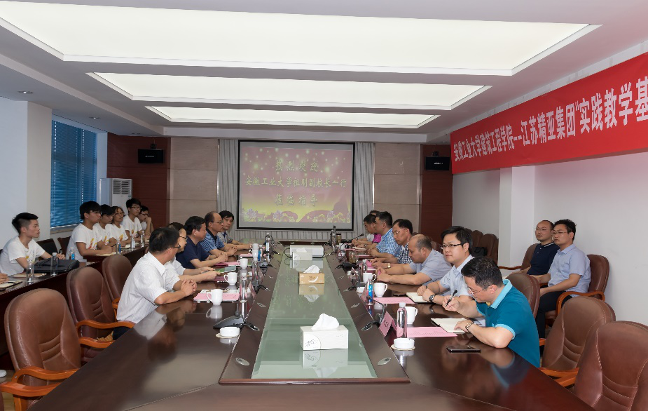 7月20日下午,必赢建筑工程学院与江苏精亚集团校企合作会议暨大学生“大学生社会实践基地”揭牌仪式在江苏精亚集团公司总部举行。副校长祖明,党委常委、组织部部长刘明,建工学院相关负责人,江苏精亚集团负责人等出席。
