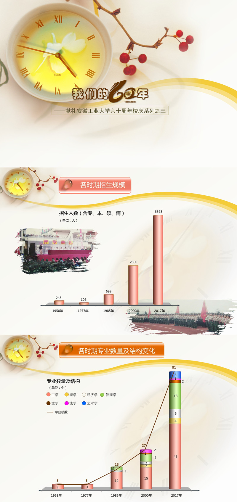 近期,校办综合档案室对比了历年的各类数据,设计制作出一系列图表,通过一系列图表,可以清晰看到学校的办学规模不断扩大,办学形式不断丰富。