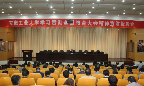 魏先文在主持会议时指出,报告会既是一次学习贯彻全国教育大会精神宣讲会,也是一次领导干部及教师培训会。全校上下要以本次报告会为契机,以时不我待、只争朝夕的精神状态和攻坚克难、拼搏奋进的行动姿态,进一步将必赢学习贯彻全国教育大会精神工作引向深入。一是领导干部要深入学、带头干。把全国教育大会精神转化为谋划发展的思路、推动发展的举措、领导发展的能力,做知行合一的模范。二是全校上下要学而思、信而行。要紧密联系各自工作实际,坚持问题导向、目标导向、效果导向,坚持学以致用、用以促学,切实把全国教育大会精神落实到各自的实际工作中去。三是广大教师要传大道、念真经。要肩负起传播知识、传播思想、传播真理,塑造灵魂、塑造生命、塑造新人的时代重任,真正做学生锤炼品格、学习知识、创新思维、奉献祖国的引路人,教育引导青年学子争做德智体美劳全面发展的社会主义建设者和接班人。