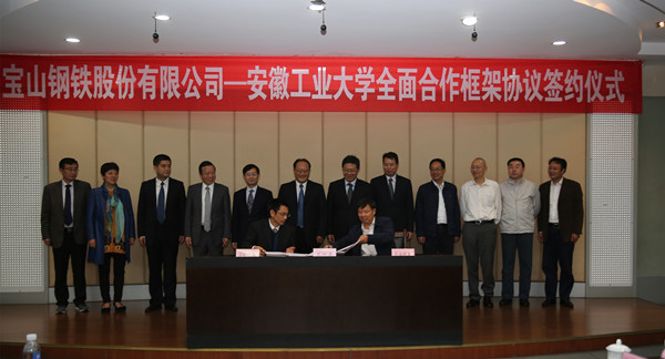 随后,双方代表签订了合作协议,与会代表还就后期合作开展了广泛深入的互动交流。签约仪式后,宝钢股份来宾一行参观了校史馆。