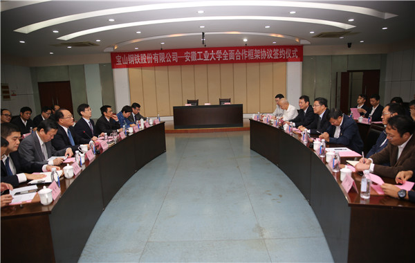 魏先文在主持会议时指出,全面合作框架协议的签订是新起点,标志着双方建立了更为紧密、稳固的合作伙伴关系,安工大将结合宝钢股份的新发展、新形势和新需求,及时跟进,围绕钢铁企业链条,将技术研发与创新成果运用在企业产品,以贡献求支持;继续加大人才培养力度,注重教育、培训,对接好人才发展需求。他希望在双方在平台建设、促进科技成果转化等方面加强合作,发挥各自优势,将双方的合作推向新的高度。