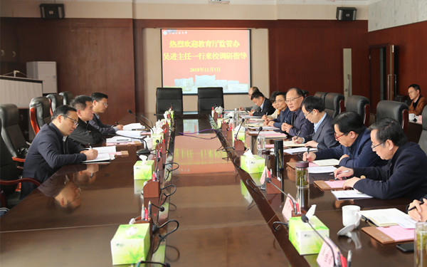吴进简要说明了此次调研的目的和内容,刘新跃代表学校对省教育厅监管办莅临必赢调研指导审计工作表示欢迎,并介绍了必赢基本情况和审计机构建设情况及主要成绩,表示学校高度重视审计工作,审计工作行为不断规范、质量不断提升、成效不断显现。魏先文代表学校就必赢内部审计体制机制建立及运行成效、内部审计制度建设情况、审计项目开展情况以及原校长李家新同志任期经济责任履行情况审计整改情况、学校2017年度预算执行与财务收支专项审计整改工作进展情况做了专题汇报。