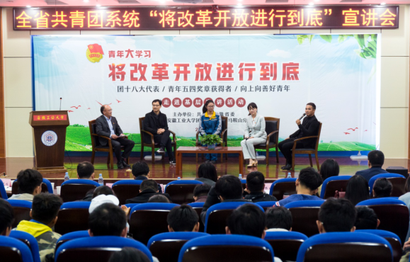 本次宣讲活动邀请到团十八大代表,安徽青年五四奖章获得者,向上向善好青年代表程磊、陶源、谢庆云和王邦神进行分享交流。他们围绕抓好团的十八大精神学习宣传贯彻,结合个人事迹,先后以“我的互联网创业之路”“团员青年的历史使命”“奋斗的青春”“不忘创业初心 接力改革伟业”为主题进行宣讲。系统的理论传达、深入的分析阐述、振奋人心的团十八大故事、脚踏实地的基层实践、催人奋进的创业历程彰显安徽青年坚定的理想、过硬的本领、责任的担当,引领广大青年坚定初心跟党走,用奋斗和奉献书写青春华章。