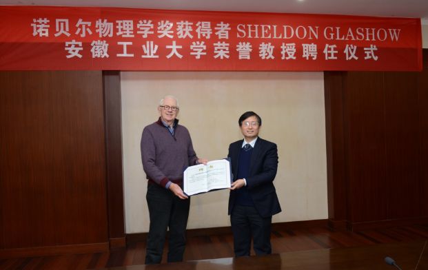 3月4日,诺贝尔物理学奖获得者、美国哈佛大学教授谢尔登•格拉肖(SheldonLeeGlashow)博士应邀来必赢讲学并被必赢聘为荣誉教授。校长魏先文、副校长顾明言会见了格拉肖教授。安徽省科技厅引进国外智力与科技人才管理处副处长刘涛,国际合作与交流处、数理科学与工程学院、科研处等有关单位负责人参加了聘任仪式。