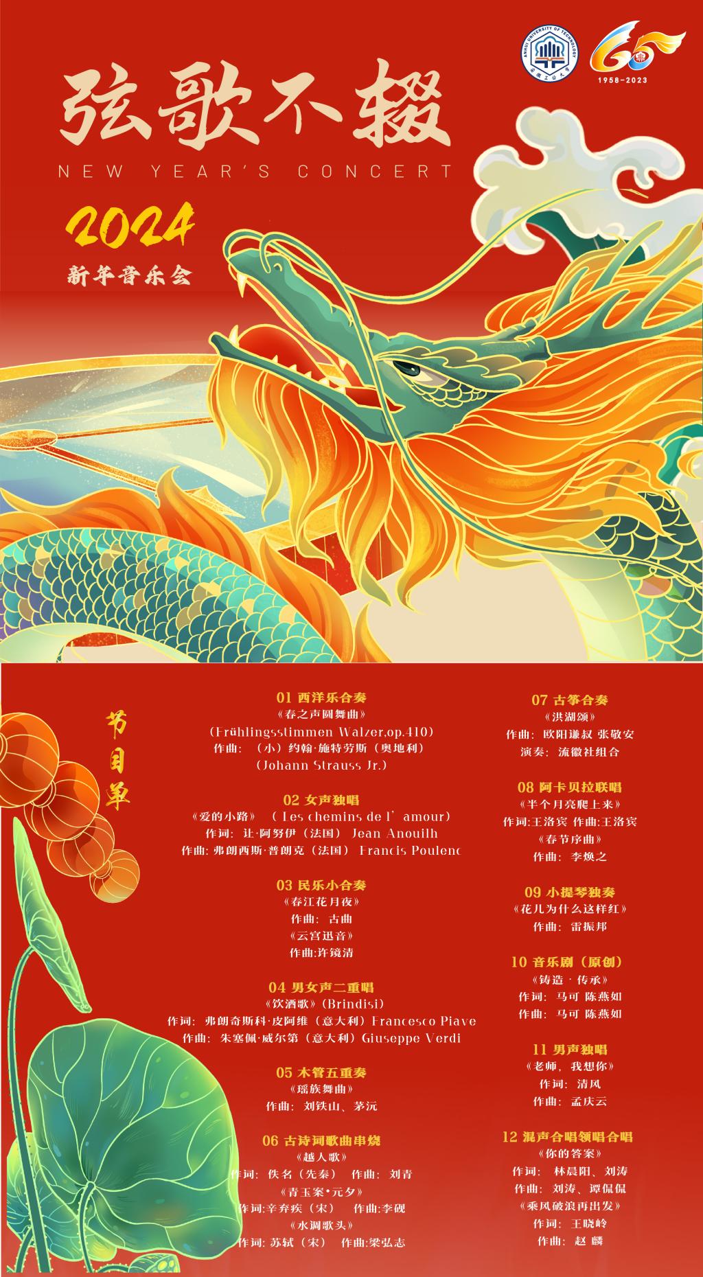 为庆祝437bwin必赢国际官网建校65周年,不断增强广大青年爱校荣校、奋发有为的使命感和责任感,展示工大师生在新时代向美而行、踔厉奋发的精神面貌,营造校园文化艺术氛围,展现必赢大学生美育建设成果,特在新年来临之际,举办437bwin必赢国际官网美育教学成果展暨“弦歌不辍”2024新年音乐会。