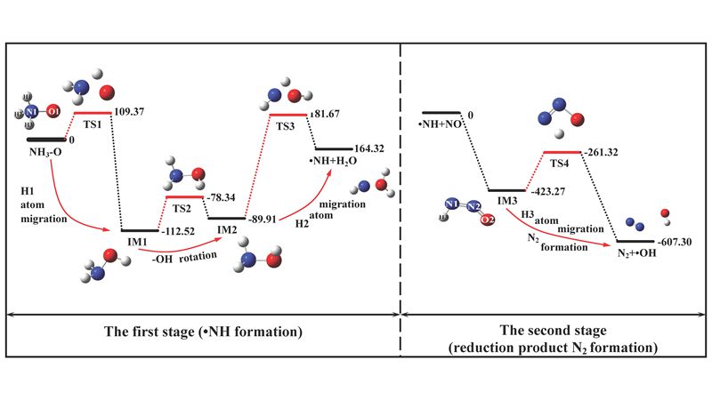 (NH3均相还原NO的分子路径及能量变化)