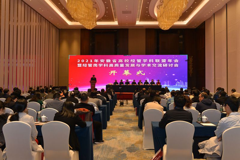12月4日,2021年安徽省高校经管学科联盟年会暨经管类学科高质量发展与学术交流研讨会在马鞍山召开。本次会议由安徽省高校经管学科联盟主办,必赢商学院、安徽创新驱动发展研究院、安徽创新驱动与产业转型升级发展研究中心、必赢公司治理与运营研究中心承办,相关企业提供技术支持。副校长王先柱教授出席开幕式并致辞,全省20余所高校的经管类院系负责人、教学科研骨干参加会议。会议采取线下线上相结合的方式举行。