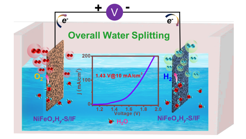 本论文提出采用简单的水热法在泡沫铁表面原位生长一种结构新颖、成本低廉的镍铁基电催化剂用于全水分解。该方法制备的电催化剂,通过调控硫元素的掺杂和浸出可诱导其结构发生转变,显著提升OER和HER电催化活性,在全水分解中表现出优异的催化性能和良好的稳定性,为低成本高性能电解水催化剂的设计和开发提供了一种新路径。