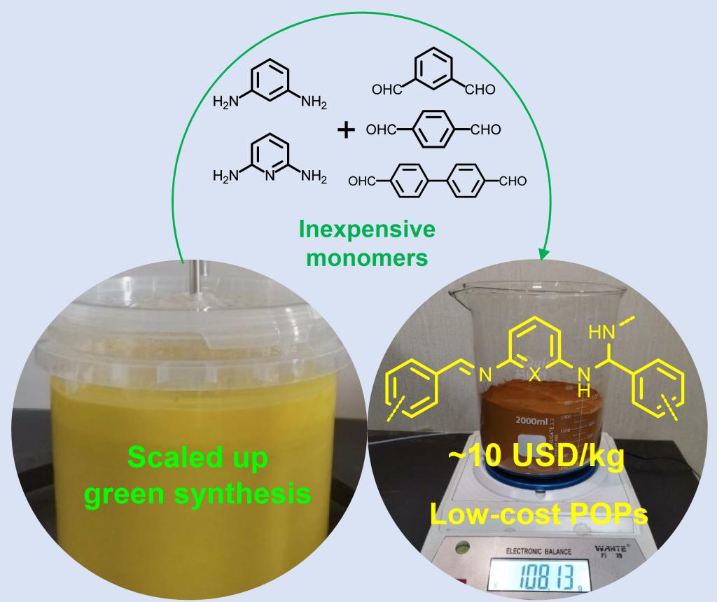 多孔有机聚合物具有较高的比表面积和优异的稳定性,在吸附、分离、催化和能源存储等应用领域得到广泛关注。然而,合成多孔有机聚合物通常需要价格昂贵的有机单体、高成本和有毒的有机溶剂以及较高的反应温度,这些因素在很大程度上限制了多孔有机聚合物的大规模制备,从而阻碍了其应用开发。