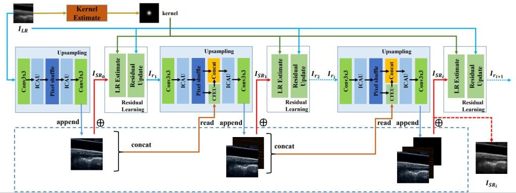 (渐进残差学习与记忆升级超声影像盲超分)