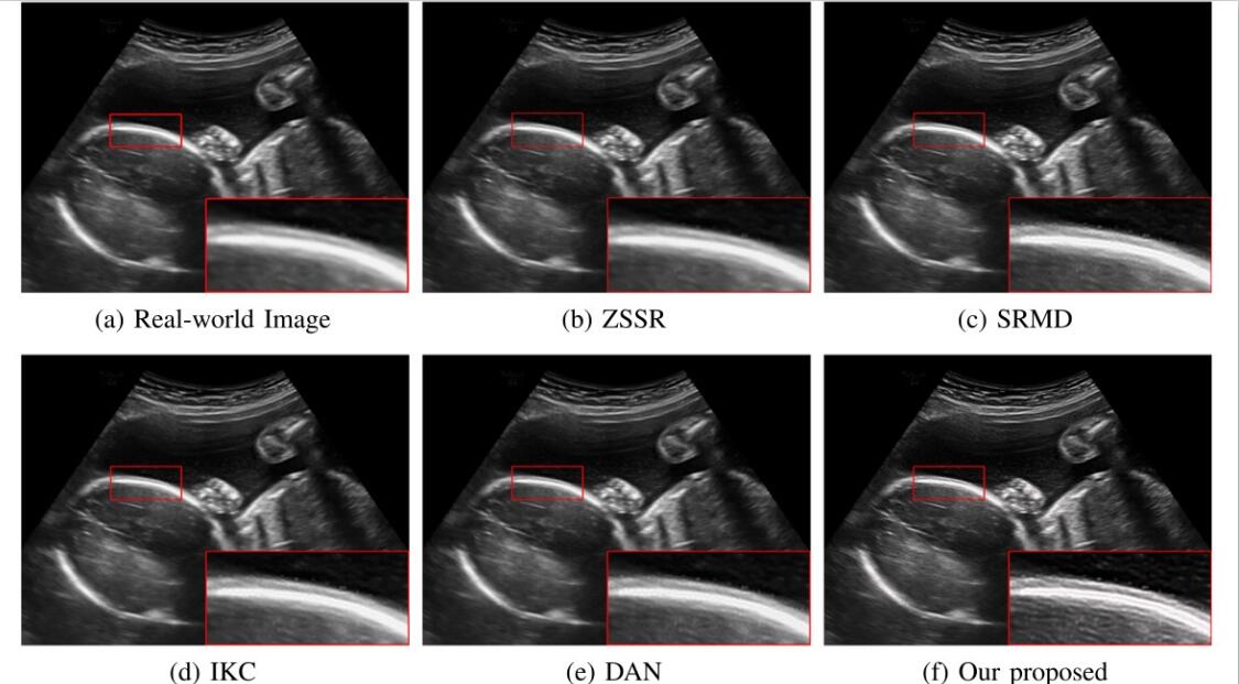 (真实场景超声影像盲超分效果对比图)