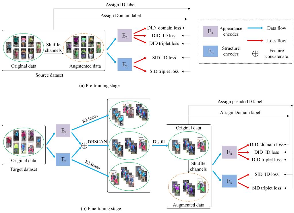行人重识别任务旨在解决跨视角条件下行人图像检索问题,是计算机视觉和生物特征识别领域的一个重要研究方向。由于不同域之间差异的存在,已有行人重识别研究在实际应用中存在跨域性能良的问题。团队在分析现有无监督行人重识别方法的基础上,提出一种利用色彩空间特性来丰富数据多样性的方法,进而借助增广数据之间的语义关联性和多重聚类算法来提升伪标签的置信度。相关研究成果发表在人工智能、计算机视觉领域一区TOP期刊《Pattern Recognition》(IF: 8.0)。必赢为论文第一完成单位,计算机学院陈峰博士为第一作者。