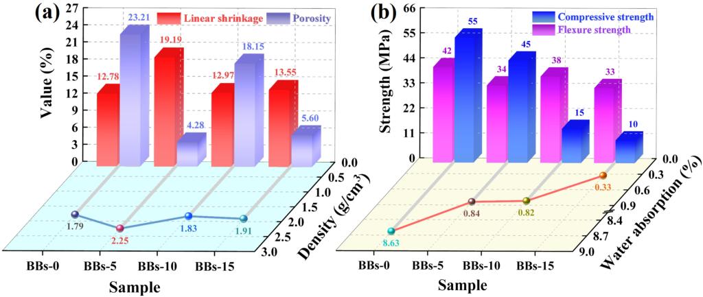 为了降低烧结温度和烧结能耗,在上述工作的基础上,团队进一步利用高炉渣替代部分高岭土制备出可持续建筑砖。研究表明,高炉渣的加入可以促进建筑砖中液态玻璃相的产生,从而调节了建筑砖的气孔结构、工程性能、颗粒排列以及固结程度,为污泥和高炉渣固废在建筑材料中的利用提供了参考。相关成果发表在建筑和建材领域顶级期刊《Cement and Concrete Composites》(中科院一区TOP期刊,IF为10.5)和《Construction and Building Materials》(中科院一区TOP期刊,IF为7.4)。必赢为论文唯一单位,蔚来好博士为第一作者,张颖异副教授为通讯作者。