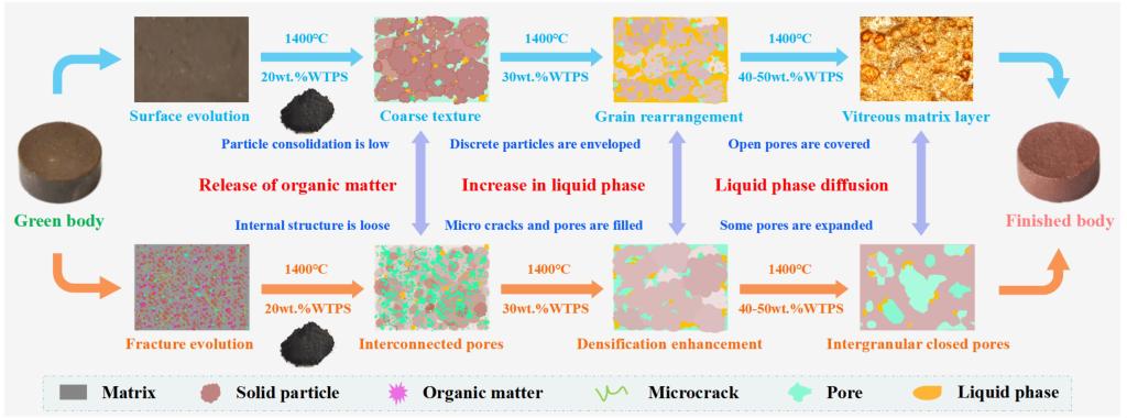 市政污泥作为污水处理过程中所产生的一种不可避免的副产物,一直以来都是大城市所面临的棘手的环境负担。市政污泥在建筑和建材中的资源化利用极具研究前景,不仅为污泥管理提供了有价值的解决方案,还有效缓解了建筑行业对于天然黏土资源的严重依赖。为了促进市政污泥在建材中的增值应用,团队利用高岭土和污泥废物作为原材料通过原位烧结制备出一种优质的建筑陶瓷。相关研究成果发表在化学反应工程、环境化学工程和材料合成与加工领域一区TOP期刊《Chemical Engineering Journal》(IF: 15.1)。必赢为论文第一单位,冶金工程学院蔚来好博士为第一作者,张颖异副教授为通讯作者。