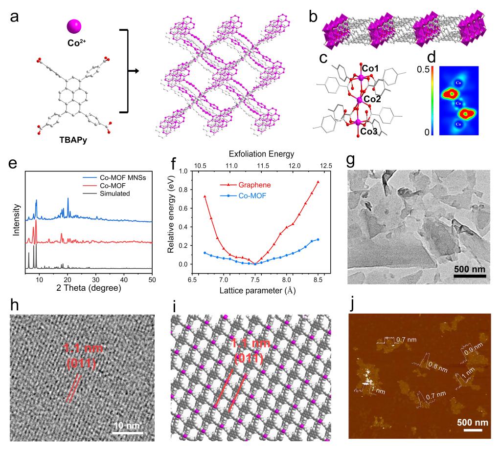 (Co-MOF单分子纳米片的晶体结构、制备示意图、形貌及结构表征)