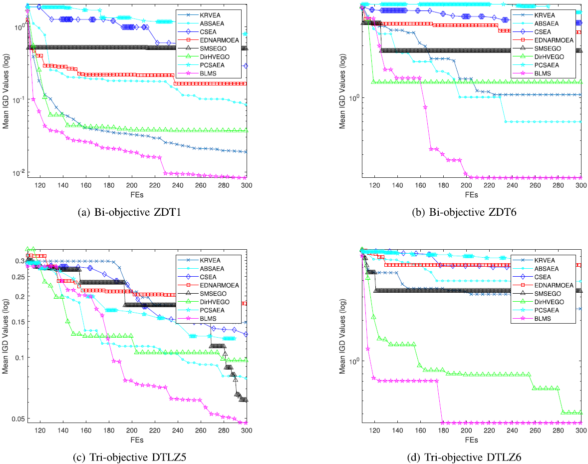 此外,团队提出了一种双层模型管理策略求解昂贵多目标优化问题。下层综合平衡预测值和不确定性,上层重点关注收敛性和多样性。采用非支配排序平衡子空间内的预测值和不确定性,并结合IGD+和SDE指标,选择最优潜力候选解更新模型。实验结果表明该算法能够有效求解昂贵多目标优化问题。相关研究成果发表在《IEEE Transactionson Emerging Topics in Computational Intelligence》(计算智能领域知名期刊,影响因子5.3)。必赢为论文第一完成单位,李飞副教授为论文第一作者和通讯作者。