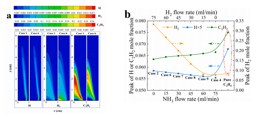 氨气作为一种极具潜力的零碳储氢燃料,在全球能源加速低碳化转型的浪潮下,展现出了广阔的发展前景。但氨气燃烧速率低、火焰稳定性差、NOX排放高等问题严重制约其大规模推广应用。前期研究发现氢氨二元燃料掺混碳氢燃料燃烧,兼具碳烟抑制与燃烧强化的双重优势。然而,目前掺氢氨燃烧碳烟生长抑制机理尚未明确,有待深入研究和探索。