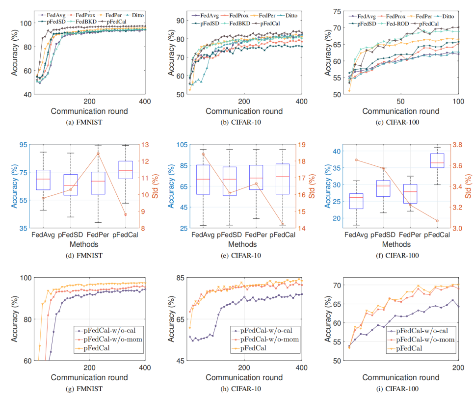 联邦学习作为一种保护数据隐私的分布式计算框架,允许多个客户端在不共享原始数据的情况下协同训练模型。然而,现实场景中,统计异构性、资源约束和公平性等问题限制了其实际应用。针对统计异构性导致的聚合差距问题,团队提出了pFedCal算法,通过轻量级自适应校准策略,在模型初始化阶段引入基于全局梯度和最新梯度偏差的校准补偿,有效降低计算开销并提升公平性。理论分析表明,在适当的学习率下,pFedCal可收敛至非凸损失函数的一阶平稳点。