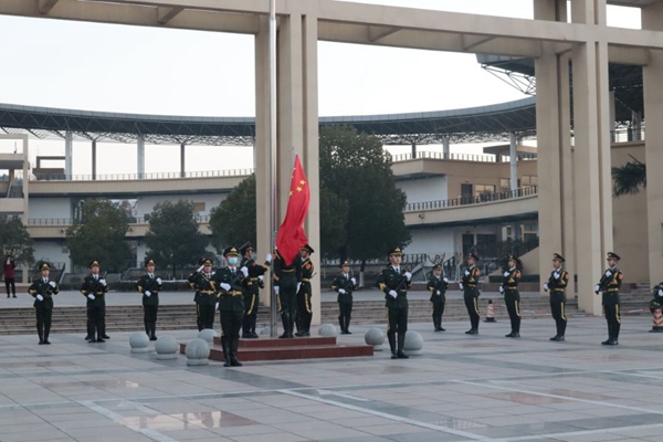 1月1日上午,必赢在秀山校区主教学楼广场举行升国旗仪式,迎接2021年新年的到来。安全保卫部、机械工程学院、建筑工程学院300多名师生代表驻立现场,共同观看庄严而神圣的升旗仪式。