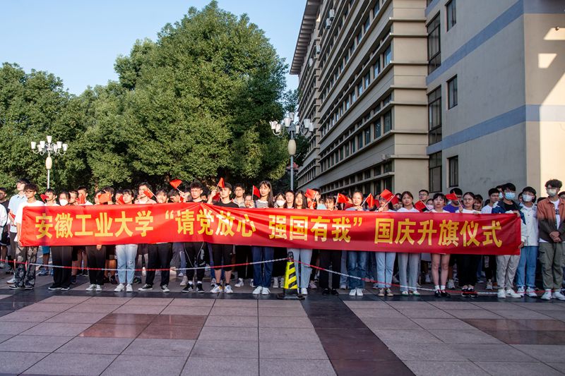 上午7时,校国旗护卫队擎着鲜艳的五星红旗,喊着嘹亮的口号,迈着整齐的步伐向旗台迈进。随着国歌声响起,五星红旗冉冉升起,全体师生行注目礼,并齐唱国歌。升旗仪式后,校青年马克思主义培养工程培训班学员代表、校学生会主席团成员吕永祥作了国旗下的演讲。随后,4名身着印有“青春向党,奋斗强国”红色T恤的学生代表在国旗下用铿锵而又坚定的声音为祖国献词,4声响亮的“请党放心,强国有我”的誓言表达了全体安工大人对祖国的深情礼赞和真挚的爱党爱国爱校情感。艺术与设计学院合唱团成员领唱《437bwin必赢国际官网校歌》和《我和我的祖国》,清脆悦耳的歌声在清晨的校园里回荡。