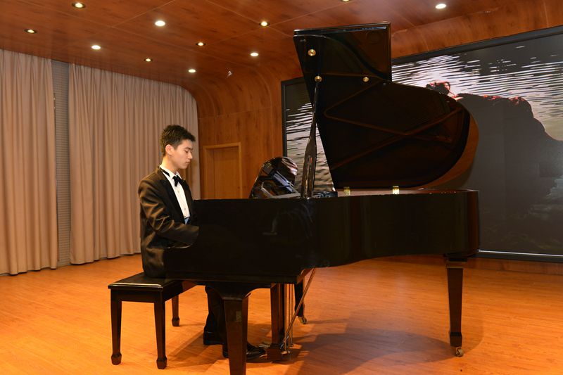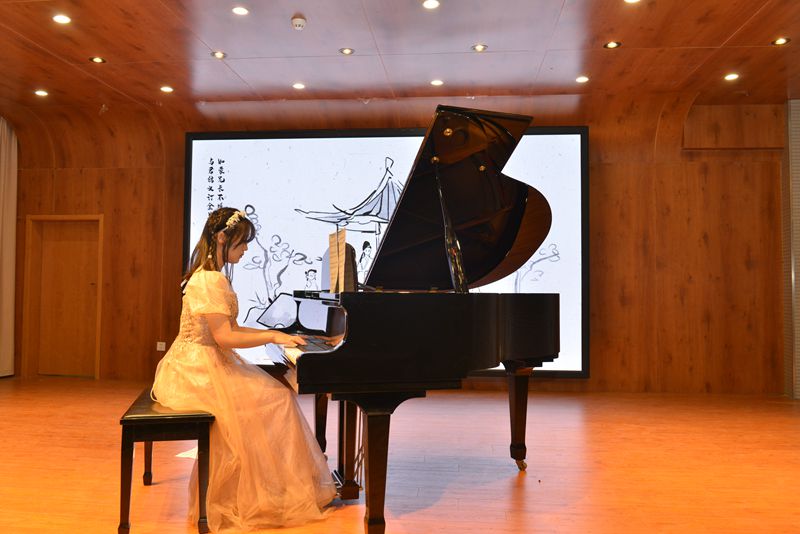 钢琴专场听赏会在经典名曲《致爱丽丝》中拉开帷幕,一曲《summer》则以轻快悠扬的节奏刻画出清新美好的自然之景,令人陶醉不已、心向往之。钢琴曲《我和我的祖国》高昂热烈、振奋人心,尽抒爱国心声,《童年的回忆》带领观众回忆童年时光,情怀交织、引人共鸣。流行钢琴曲串烧与吉他弹唱《安河桥》动情演绎着流行乐曲的魅力,《梁祝》《土耳其进行曲》《水边的阿狄丽娜》三曲则借其宛转悠扬的旋律,表达对美好情感真切向往。听赏会在动听的《夜曲》与《欢乐进行曲》中落幕。
