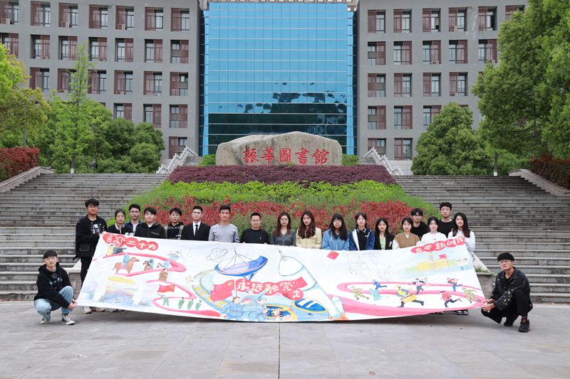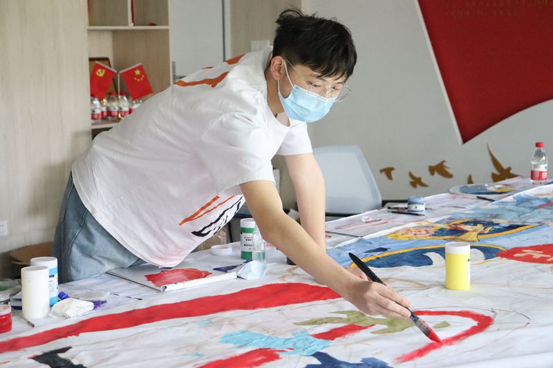 历时40天,在艺术与设计学院志愿者大力帮助下,两届研支团有序完成画卷的制作。从确定主题、内容选取、绘制初稿、全局上色、创意手绘,成员之间展开深入探讨,结合服务地学校学生的意见,最终确定以两处学校为主体,依托抗战中的青年英雄、中国航天人、疫情中的各行青年等题材,充分展现了党领导下不同时期中国青年朝气蓬勃的奋斗形象。