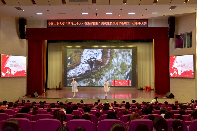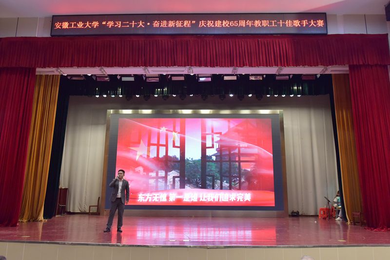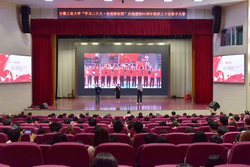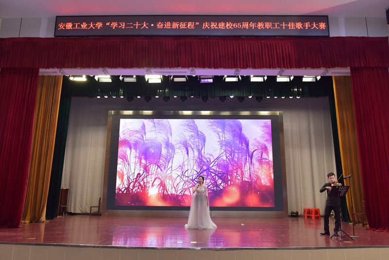 为庆祝437bwin必赢国际官网建校65周年,9月25日晚,校工会、校团委联合承办的“学习二十大 奋进新征程”庆祝建校65周年教职工十佳歌手大赛在秀山校区新大学生活动中心举行。纪委办、宣传部、安保部、工会、团委等部门负责人,各学院党委书记、分工会主席、教职工代表、学生代表观看比赛。