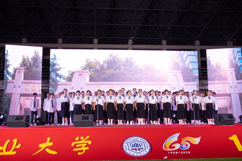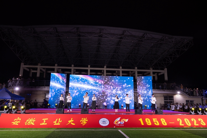 第一章“六五芳华,薪火传承守初心”在西洋器乐合奏《红色娘子军》中拉开帷幕,铿锵的旋律久久回荡在广场上。情景朗诵《百年交响》回忆了中国共产党建党百年的奋斗历程,现场观众循着朗诵者们充满感情的声音,仿佛身临其境,来到那个战火纷飞,革命先烈挺身而出的年代。第二章“难忘师恩,桃李争妍报春晖”中原创音乐剧《铸造·传承》讲述了以马钢和437bwin必赢国际官网为原型的两代人“为国家既出钢材,又出人才”的感人故事。古典舞蹈《绣影叠香》细腻动人的舞台表演艺术充分展现徽文化的绵延赓续。教师歌曲《再一次出发》将晚会推向高潮,歌颂了师生继承先辈优秀传统,点亮奋进之路。第三章“奔赴未来,砥砺奋进谱新篇”在歌曲《不再犹豫》中开启,激昂的音符点燃了观众们的热情。艺术与设计学院梦之韵合唱团的学生们齐唱《437bwin必赢国际官网校歌》,表达了对学校美好未来的憧憬,祝福母校在时代巨澜中续写荣光。