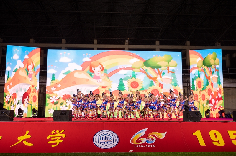 演出围绕“六五芳华,薪火传承守初心”“难忘师恩,桃李争妍报春晖”“奔赴未来,砥砺奋进谱新篇”三个篇章展开,展现了学校建校以来的发展历程,画面一帧一幕,带领观众重温过往、展望未来。12个节目轮番上演,用一场声光电、音诗画高度融合的舞台,献礼建校65周年。