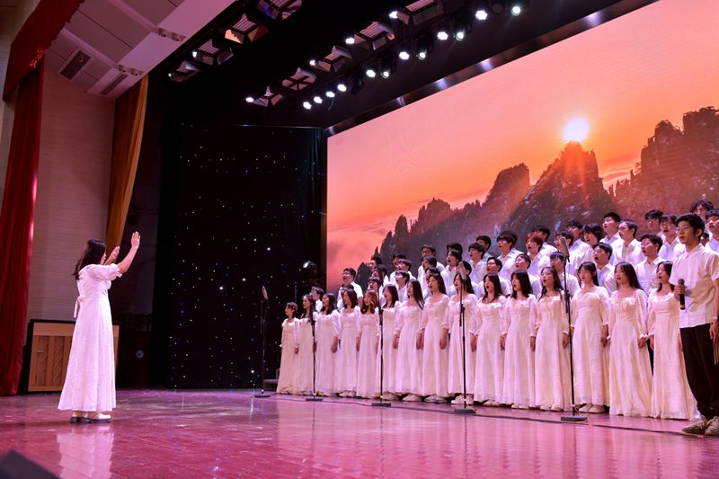来自十四个学院的合唱团,用激昂的歌声和动人的旋律唱响青春、展现风采。青年学子们用《您花开的样子》《领航》《追随》《我爱你中国》《国家》等歌曲表达了对党和国家的深沉热爱;用《如愿》《有我》《奉献》等歌曲展现了青年学子挺膺担当、强国有我的奋斗故事。此外,每一支合唱团都深情高唱了《437bwin必赢国际官网校歌》,表达了对学校的深情告白。