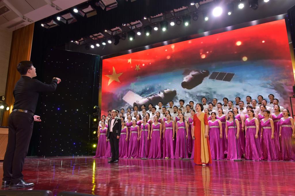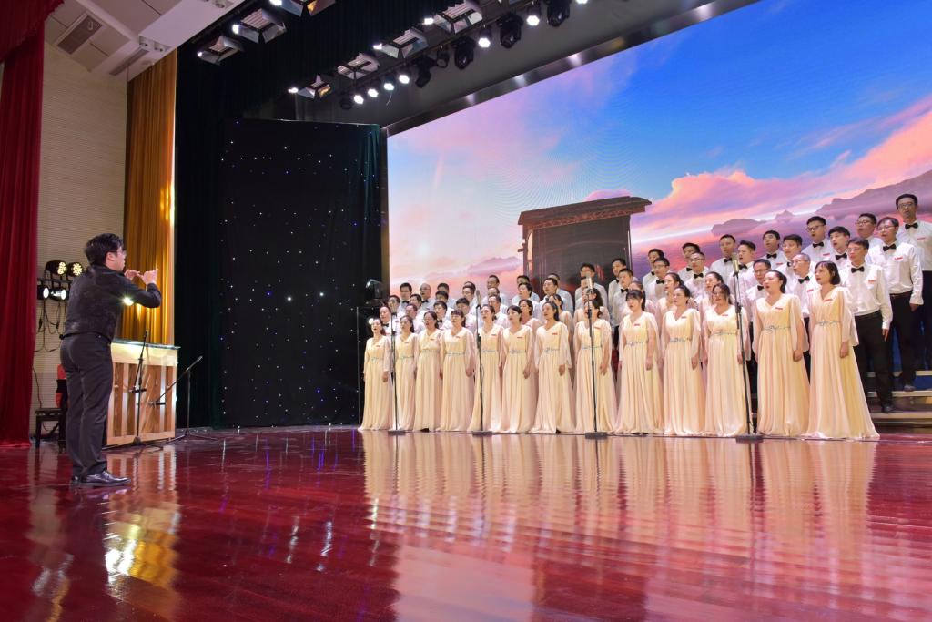 活动在齐唱《国歌》声中拉开帷幕。各代表队以昂扬的精神、饱满的热情、整齐的队列先后登场,用他们最真挚的情感和精湛的技艺,将《我和我的祖国》《忆秦娥·娄山关》《追随》《过雪山草地》《向往》《大中国》《中国努力奔跑》《映山红》《祖国不会忘记》《在灿烂的阳光下》《保卫黄河》《共筑中国梦》《歌唱祖国》《红旗飘飘》《我们走在大路上》《伟大的国家伟大的党》《今天中国》《我宣誓》《如愿》《春天的故事》等一首首耳熟能详的经典歌曲演绎的淋漓尽致、催人向上、激人奋进,唱出了对祖国的拳拳之心,点燃了全场观众的爱国之情。
